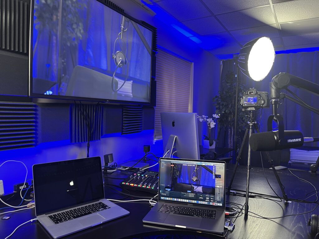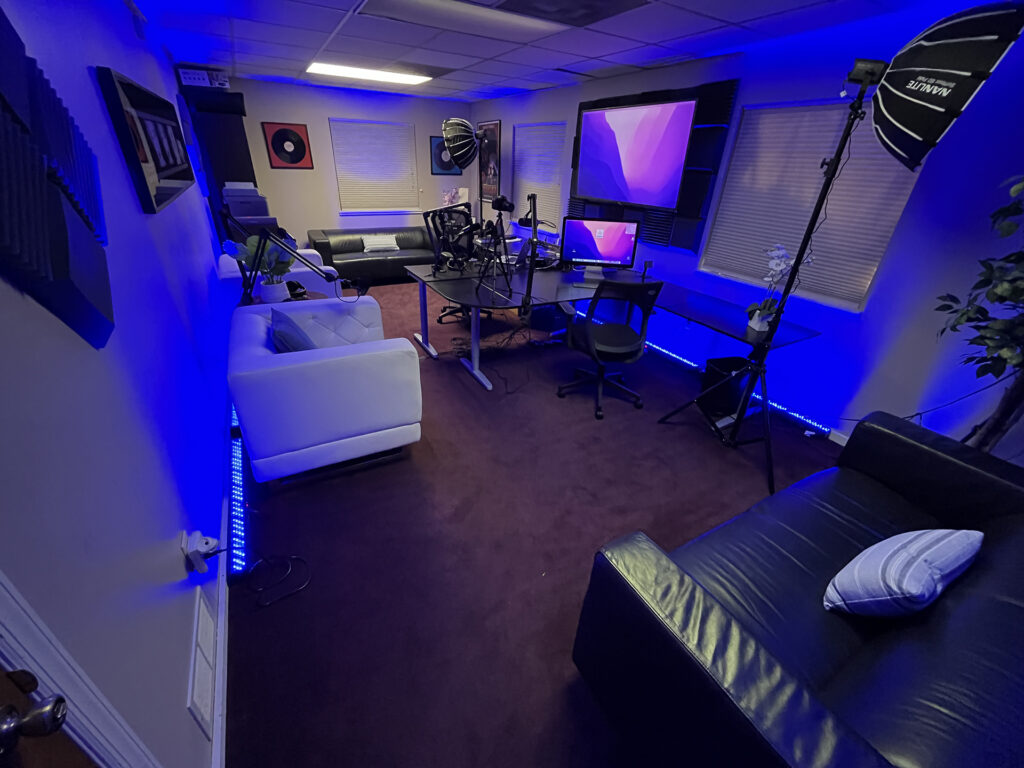 • Studio for recording up to 3 people (with soft seating for up to 4 guests)